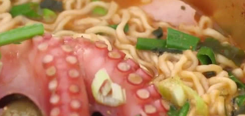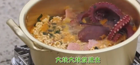 韓國人最喜歡吃泡面,而且用煮的方便面必須是選擇辛拉面,口感會好吃,吃到的食物也會受到所有吃貨的喜歡,但吃到海鮮方便面,韓國人就很喜歡在這裡面下章魚,把剛捕撈上來的章魚整隻都放下去,這樣吃到的口感會更吸取到吃貨的喜歡。看著都比鍋還要大瞭。