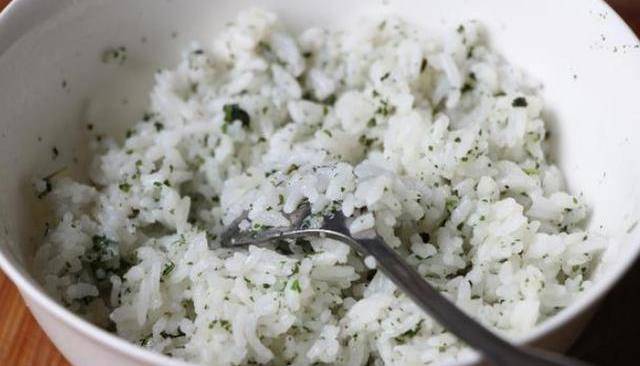 首先我們需要處理米飯,制作飯團和炒飯不同,炒飯是需要隔一天的飯,但是飯團就不行瞭,最好是選擇用新出鍋熱乎的,我們把米飯放進一個容器中,這個時候喜歡吃紫菜的可以把紫菜撕碎,攪拌進米飯裡面,喜歡吃蔬菜的,李莉推薦加入一些西蘭花碎,你們可以嘗試一下,保證你們能發現新天地,口感可以說是非常的清爽。