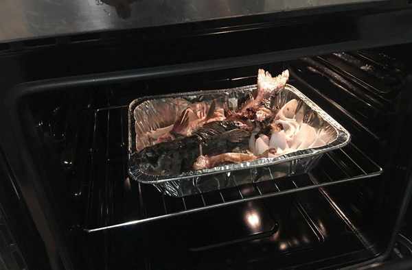 再把煎好的魚放上去,這樣魚不會粘到烤盤底上。