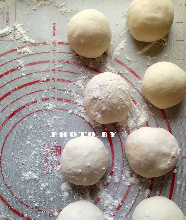 6、揉面墊上撒上適量幹粉,將面團取出,分成8份;