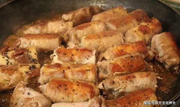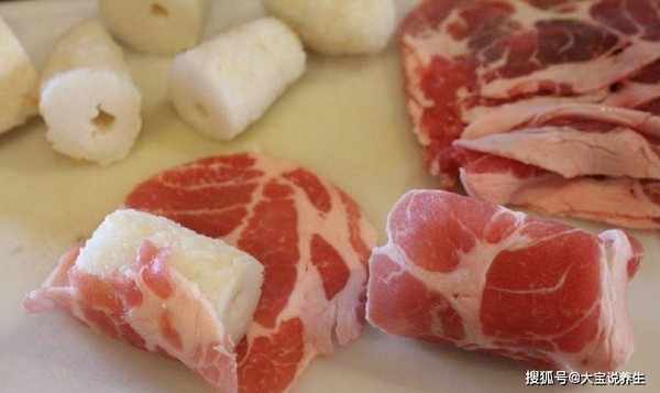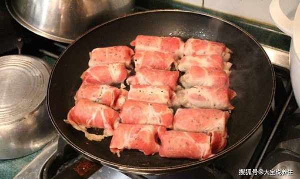 7、鍋燒熱後,將卷好的肉片放入鍋中。
