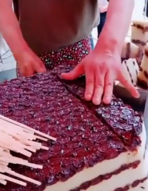 我朋友就帶我去瞭學校門口的一條小吃街,還給我介紹說從上初中開始這個街就很出名。雖然看著簡陋,但是是當地人最喜歡的小吃街。剛進來就看到瞭這個,棗切糕肯定很多人都沒見過,第一次來陜西找朋友玩,遠遠看到這這個攤位的人特別多,作為一個資深吃貨肯定不能放過,走近一看怎麼像是網上流傳的天價切糕?竟然還有這麼多學生排隊購買。朋友看出瞭我的疑慮,說這是陜西特有的棗切糕,價位也適中,所以買的人很多。