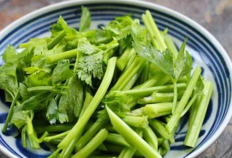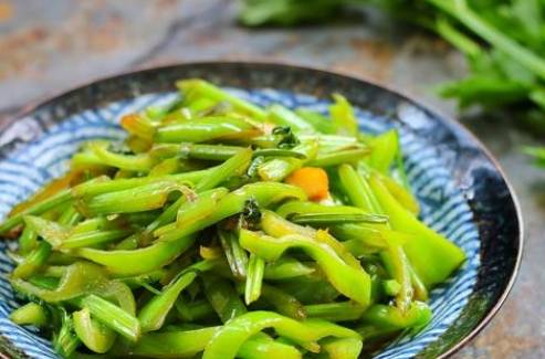 和芹菜的黃金搭配就是尖椒。首先,芹菜一小把,尖椒兩到三個,蔥和蒜各是適量油鹽生抽各一湯勺。把芹菜的老葉摘掉,嫩葉可以留下。其實芹菜葉的營養比芹菜枝的價值會更高。老葉奶奶也沒有浪費,就是到下午的時候可以把它做成將面條。尖椒清洗幹凈,切成絲,蔥和蒜改刀切好待用。熱油,先爆香蔥和蒜,芹菜炒至變色,顏色變成深綠色的時候,再放入尖椒繼續翻炒,尖椒容易成熟芹菜不容易熟,所以這個順序千萬別記錯瞭。尖椒也開始變色的時候,加入適量的鹽和生抽繼續翻炒,兩三分鐘就可以出鍋啦。