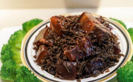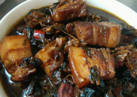 6.燉好的五花肉鮮香軟糯,肥肉也不會膩,十分美味。註意事項:化糖的時候一定要用最小的火,慢慢將糖化開,千萬不能用大火,否則會焦;慢燉的時候加少量食醋,肉會比較容易軟爛。梅幹菜紅燒肉是一道美味的菜肴。和同事去吃農傢飯,我點瞭一道傢常菜,大傢都搶著吃