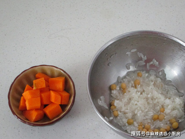 把大米和黃豆洗凈,南瓜切成小丁