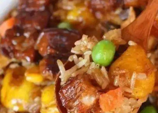 食材:大米、香腸、土豆、生抽、鹽