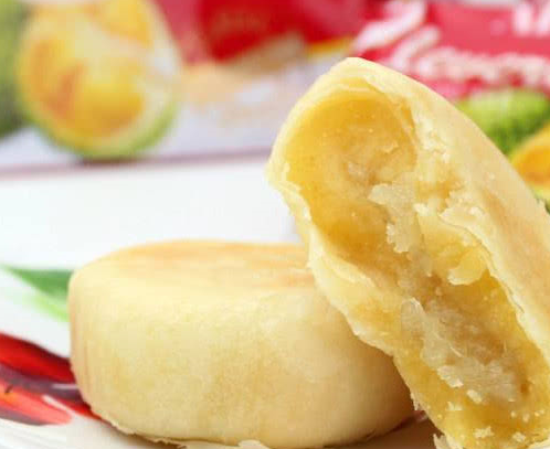 榴蓮餅:雖然很多人不喜歡吃榴蓮,但是榴蓮還是出瞭很多可以食用的美味,之前是榴蓮糖,現在是榴蓮餅,據說榴蓮餅比榴蓮糖有過之而無不及。皮薄餡軟,外皮有點點的酥酥的,不過對於不吃榴蓮味的人來說就是毒藥瞭吧。