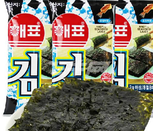 韓國海苔:很多韓國的夾心海苔在中國賣得很火爆,而且海苔這種東西好像不算是垃圾食品,類似紫菜含有豐富的維生素B,常吃點對我們的身體還是很有好處的。