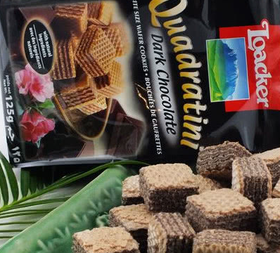 德國進口夾心巧克力威化餅:這款威化餅由5層組成,巧克力、牛奶、威化餅、榛子仁巧克力醬再加上一層威化餅,據說很多人都拿來當早餐吃的,基本大超市都能買得到,價格也不貴!