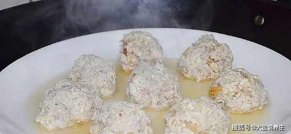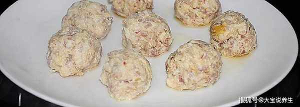 然後將適量的肉餡揉成圓球狀,放在抹瞭少許油的盤子裡。