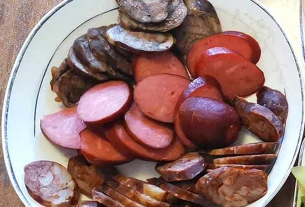 香腸、紅腸是很多年前在菜市場裡用豬肉做餡兒的,晾幹後煮一下放冰箱裡保存,吃完加熱切片,吃著走著就帶,非常方便。這也是一種非常好的食物。可以是麻辣的、麻辣的等等。口味有很多種,可以隨意選擇。