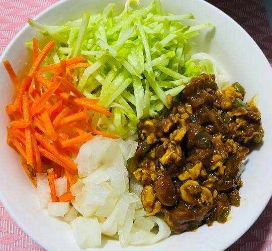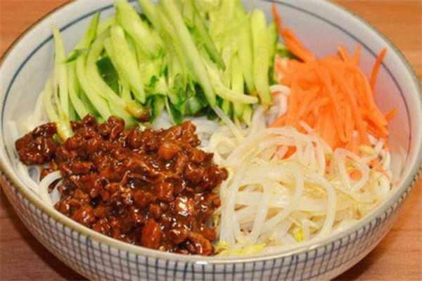 - 配料:黃瓜絲、豆芽、炒雞蛋絲、煮熟的肉絲(可選)