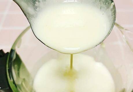 3、玉米汁加的水越少,玉米汁越稠。我用瞭2粒,重約385克,加瞭400克水。效果剛剛好。糖的用量可以根據個人口味自己準備。
