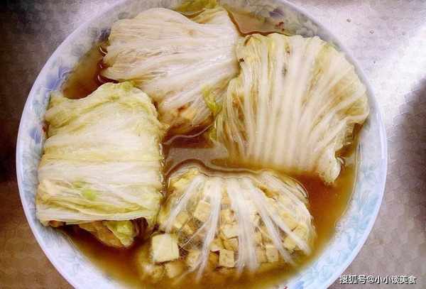 1.豆腐剁成泥;2、將雞蛋打散,攪拌均勻;3、將豆腐、雞蛋、花椒、味精、精鹽、豆粉混合成泥;4、白菜洗凈,去硬蒂,用開水焯一下。取出,瀝幹水分攤開,然後把切碎的豆腐放在上面,卷起來上籠蒸。5-10分鐘;放入碗中蒸熟。