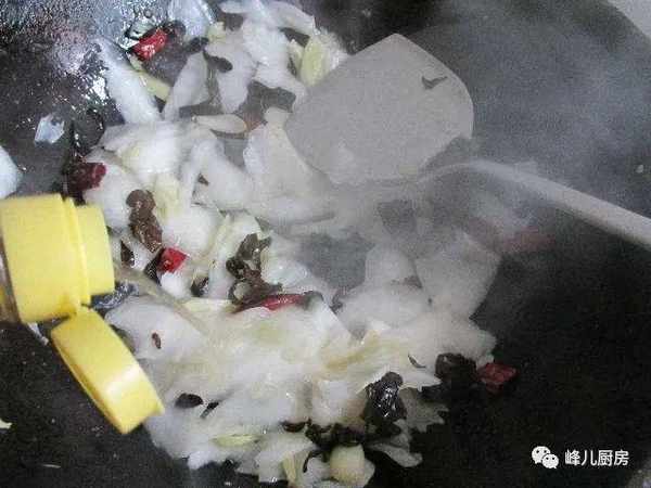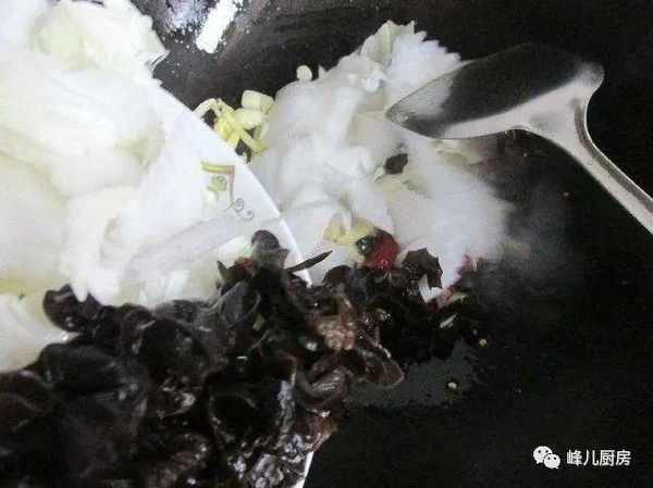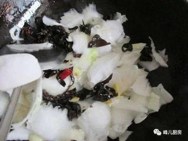 6、放入白菜,黑木耳。