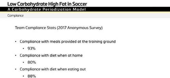 93%的運動員,在球隊中,嚴格遵守瞭低碳高脂的飲食原則