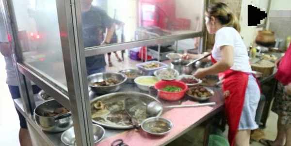 這就是農村夫婦賣的牛排瞭,一碗一根,一根30元,肉也不多,但是吃貨非常多。早上10點就有人開始排隊瞭。