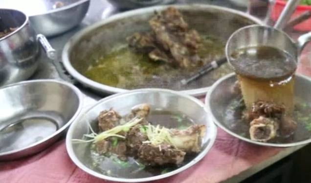 這個大鍋,老板說自己一天要燉3大鍋,一鍋100根牛排,3鍋卻不夠賣。生意非常不錯,老板說雖然生意好,可是也很累。天天5點去進新鮮牛排,回來就要劈,劈完還要洗幹凈,然後才是配料煮,老板說自己傢的牛排主要是喝湯,所以除瞭鹽,中藥之外,別的不會亂放。味道特別好,很多城裡人開專車來喝。