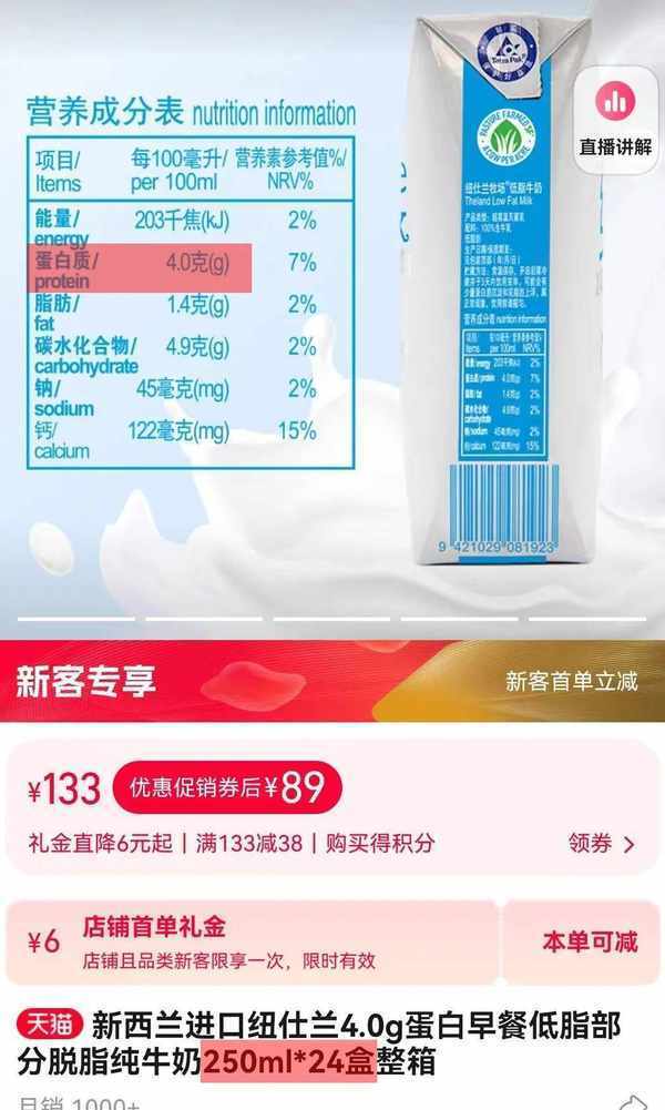 其他可達4.0克蛋白質的純牛奶,每百毫升價格隻是它的1/3~2/3。