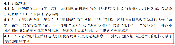而且按照GB 7718-2011《食品安全國傢標準 預包裝食品標簽通則》要求,配料表應按加入量的順序排列。也就是說原料排的越靠前,它所占的比例就越高。