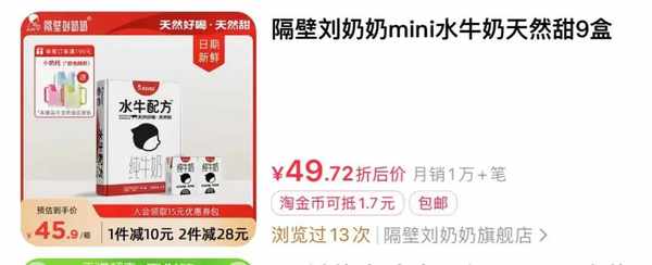 最近一款名為隔壁劉奶奶的水牛奶在電商平臺爆火,很多粉絲都來問花爸,這款牛奶表現如何。