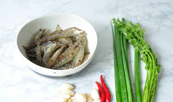 活基圍蝦小米辣香菜鹵蝦油料酒醋白酒白糖黃酒薑蒜蔥