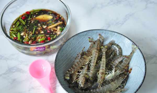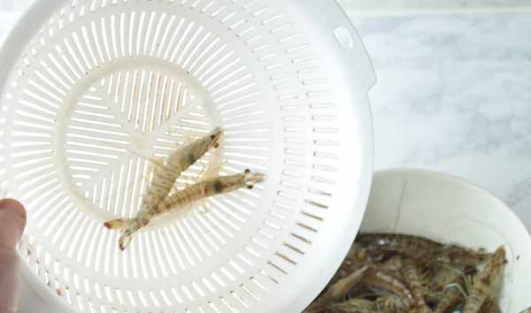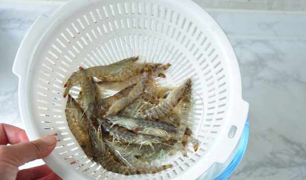 3將洗過的蝦瀝水,一定要瀝凈水份備用。