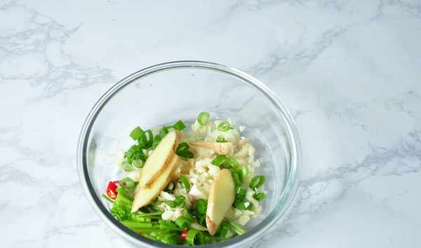 4我們把蔥切成小粒、蒜切成末,香菜切成段,薑切成片,小米辣切成小段備用。辣椒請適量放,多放會搶味的。