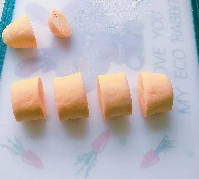 第9步、去掉兩頭,切成自己想要的大小,我這是一個60克左右(形狀根據自己的喜好,也可以做成圓形)。