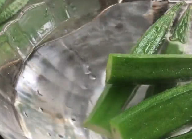 其實這道秋葵美食做法也是非常簡單的,先是需要買來一些新鮮的秋葵,然後把秋葵洗幹凈,好瞭以後就可以進行簡單的處理,把莖部切除,因為是用不到的地方,也不能用來食用。然後就可以架起鍋來,往裡面放水,再舀一勺子的鹽放在水裡,倒入食用油,放入秋葵就可以煮瞭。