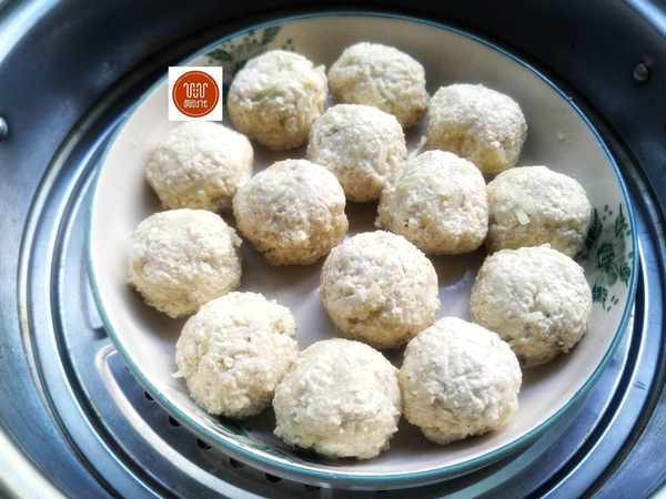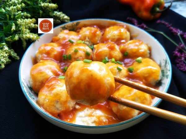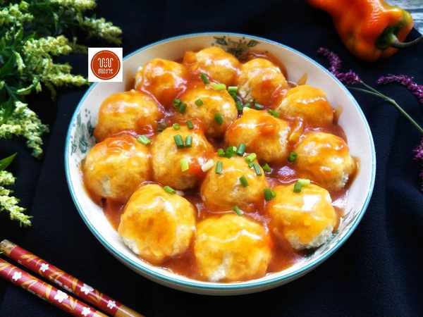4、最後在蒸好的丸子表面上澆上我們剛剛已經做好的醬汁,表面上撒入一些蔥花,這樣美味的冬瓜丸子就已經制作完成瞭,特別的有營養,比肉丸子好吃多瞭。