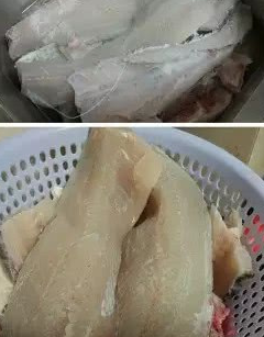 第一步,首先將草魚宰殺去內臟,然後清洗幹凈,將魚頭用刀開兩邊,魚骨切成段,魚肉片成魚片備用。