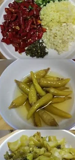第二步,準備配料,蔥薑蒜切末備用,泡辣椒切段。泡酸菜切塊然後用水清洗幹凈。