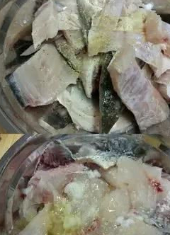 第四步,將剁好的魚塊放入碗中,加入鹽,味精,料酒,胡椒粉,醃制10分鐘備用