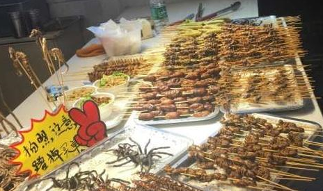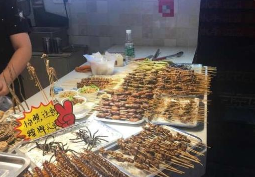 原來這小吃都是重口味的小吃,因為有的人比較喜歡刺激小吃,這種就屬於比較刺激的,還有好多網紅故意來拍視頻,拍照啊什麼的,所以價錢也相當的貴,我們看到圖中有超級大的蜈蚣,還有超級大的蜘蛛,還有超級大的蠍子,這樣的小吃賣1000元1盤。因為小吃攤前圍滿瞭人,好多網紅過來拍照,所以,阿姨為瞭不讓自己的東西弄到地上,所以寫瞭這個牌子,因為人多的時候人太多瞭,能把這個東西給擠下去。