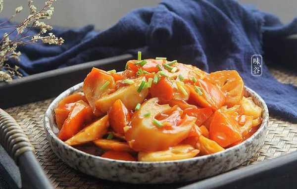 3、起鍋放油,油溫六成熱的時候,放入藕塊進行翻炒一會兒,再放入調制好的料汁翻炒上色入味,最後倒入粉芡水勾芡即可關火。這樣一道酸甜脆爽的糖醋蓮藕就好瞭。