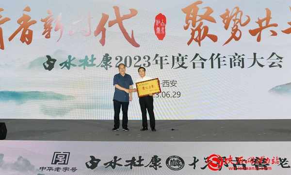 現場,政府、協會領導、行業專傢們就清香趨勢及白水杜康的高質量發展之路等話題展開瞭激情的探討,隨後為瞭感謝優質合作經銷商對白水杜康的大力支持,也為瞭助力清香型白酒產業進一步做大做強,陜西杜康酒業集團現場表彰瞭合作商,獎項共分為“突出貢獻獎、卓越貢獻獎、最佳貢獻獎”三類,獎金依次為5萬元、10萬元、20萬元。同時,陜西省民政廳為陜西杜康酒業集團授予“愛心企業”獎牌。表彰結束後,陜西杜康酒業集團和合作廠商代表們共同簽署瞭《共同維護白水杜康品牌的倡議書》。與會嘉賓共同見證高端清香大單品——十三朝·酒海陳藏老清香產品系列的上市,這是陜西杜康酒業集團發展的又一裡程碑,也必將為企業發展註入更多動能。