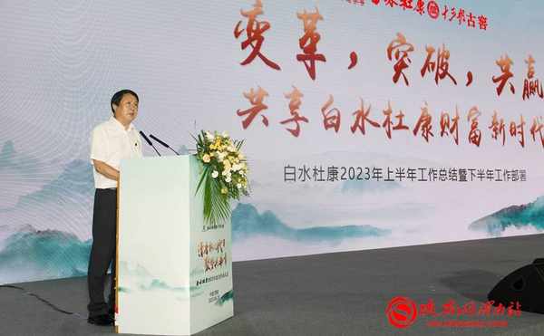 陜西杜康酒業集團總裁王勇盛全面總結、展示瞭上半年的工作,並公佈瞭下半年工作的部署安排。他表示,白水杜康將不忘釀酒初心,在未來堅持做好老清香,打響白水杜康“中華老字號”的名號,發揮名酒引領作用,將白水地區酒品牌打造為行業標桿產業。