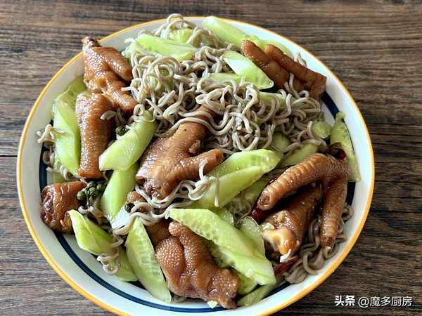 又是主食是又菜,說的就是它瞭。鹵雞爪拌面的做法如下:
