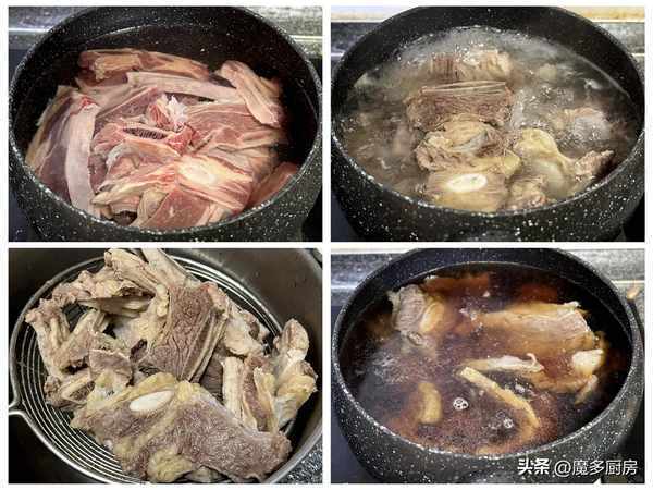1、牛肋排解凍後泡去血水,放到鍋裡,加涼水,煮出浮沫後撇去,再把牛肋排撈出瀝水,用溫水沖洗幹凈。