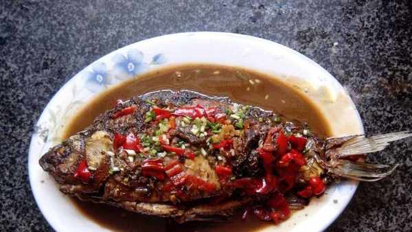 1、這是小叔叔傢做的魚,小嬸是上海人,口味偏甜,做菜喜歡濃油赤醬,特別喜歡放醬油和糖,口味偏甜,這道醬香糖醋鯽魚,酸酸甜甜,色澤濃鬱,非常下飯,燒出來的鯽魚湯汁拌飯不僅不腥,反而十分鮮香,兒子用這個鯽魚的湯汁拌飯,吃下瞭滿滿一大碗飯,小孩子果然是別人傢的飯菜香。