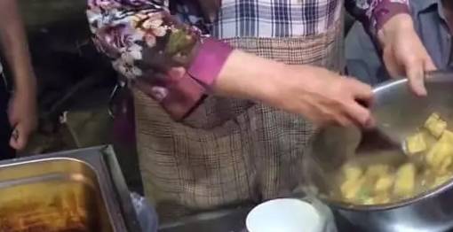 今天說的這個大媽也是做豆腐的,不過不是湖南長沙那種臭豆腐,也是一種比較特別的味道,她用的食材是我們日常生活中的鮮豆腐,然後在油鍋裡炸一下。外焦內嫩的,口感特別好,最主要的是醬汁,大媽的醬汁比較特別,都是她提前熬好的,旁邊有一口熱鍋,裡面就放的是醬汁。