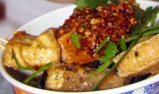 這個整體來說有點像改良版的臭豆腐,和湖南長沙臭豆腐不一樣的是,大媽,這個都是新鮮的,而且是油炸過的,隻是醬汁略微有點臭豆腐的味道。聞起來有點淡淡的臭味,但是不是那種讓人討厭的味道,吃起來口感很好,所以很多人都愛吃。
