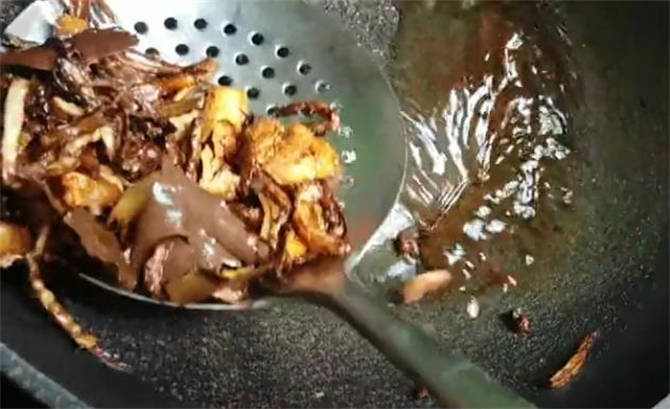 3.鍋中倒入100毫升的食用油燒開,倒入配料炸成褐色撈出,我們要的是這些配料的香味。