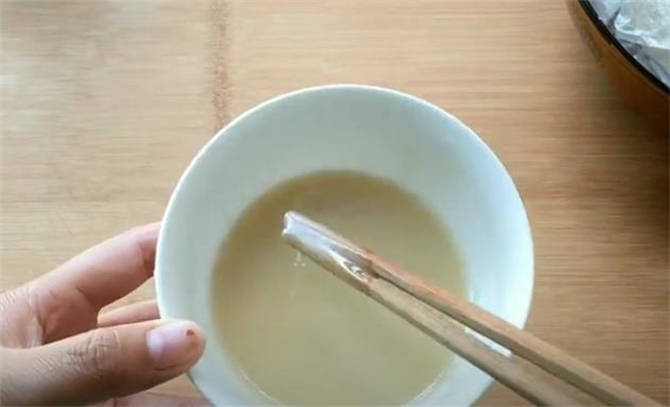 5.下面我們來制作油酥,30g面粉,加入燒開的熱油40毫升,調成稀油酥,油酥不需要再放鹽瞭,本身醬料的咸度就夠瞭。