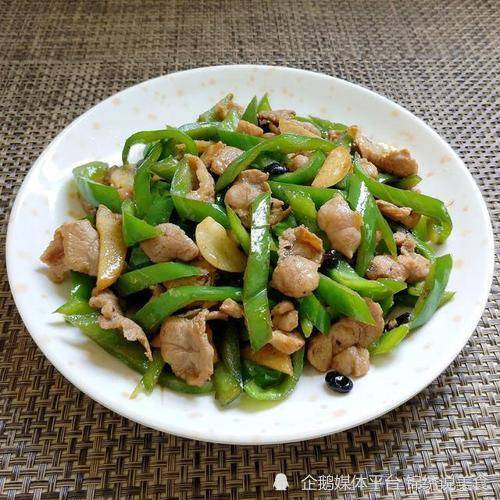 5)、鍋裡倒入食油,油熱倒入青辣椒炒至斷生後加入炒好的肉片翻炒均勻,加入食鹽,繼續翻炒繼續就可以出鍋裝盤瞭。