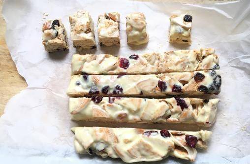 一塊雪花酥裡面包含瞭蔓越莓、草莓、藍莓等一些水果,也有紅棗、核桃這些幹果,這些配料都具有很高的營養價值,味道也很豐富,然後再加上綿軟的棉花糖和酥脆的餅幹,一口下去便立即被征服。吃一塊雪花酥,你能嘗到濃鬱的奶香味、幹果和餅幹的香脆、還有水果的清香,多種多樣的層次,吃完唇齒留香。美食達人手把手教你做網紅雪花酥!夏季的午後,雪花酥和咖啡更配。