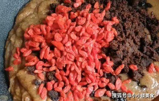 然後將搗碎的薑棗泥倒入不放油的鍋中,再倒入準備好的紅糖和枸杞。