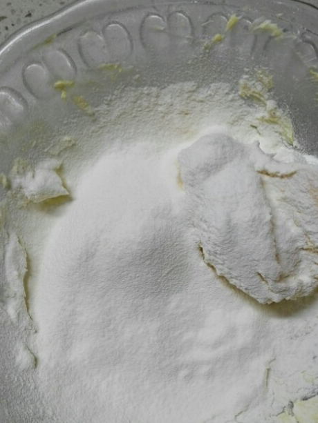 6.篩入低筋粉和玉米淀粉混合物,拌勻
