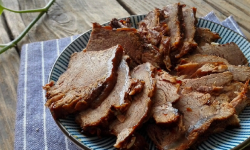 我們可以選用牛腱肉,準備老鹵,牛腱切成大塊,準備鹵料,薑切片或整塊拍一下,把鹵料包在紗佈包裡或者鹵料盒裡,冷水下鍋放入牛腱,煮開後再煮10分鐘,撈出用熱水沖洗幹凈,加入沒過肉的熱水、鹵料包、老鹵,加入老抽、鹽,蓋上蓋子,大火煮開改小火燉,煮至肉能用筷子輕松紮透,關火,悶兩三個小時入味。如果有條件最好悶一夜。最後大火收汁,至湯剩一小碗,撈出料包和薑,留鹵汁放涼入冰箱冷凍保存作為老湯,下次再用的時候直接加入鍋裡。切片擺盤,也可以蘸個料汁吃。那味道太香瞭,每次我煮肉鄰居都聞得到,這樣做出來的牛肉,有嚼勁,很入味,一點也不膩。老公一天能吃一盤,再想吃就沒有瞭。